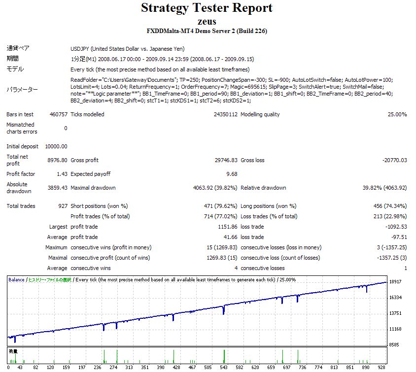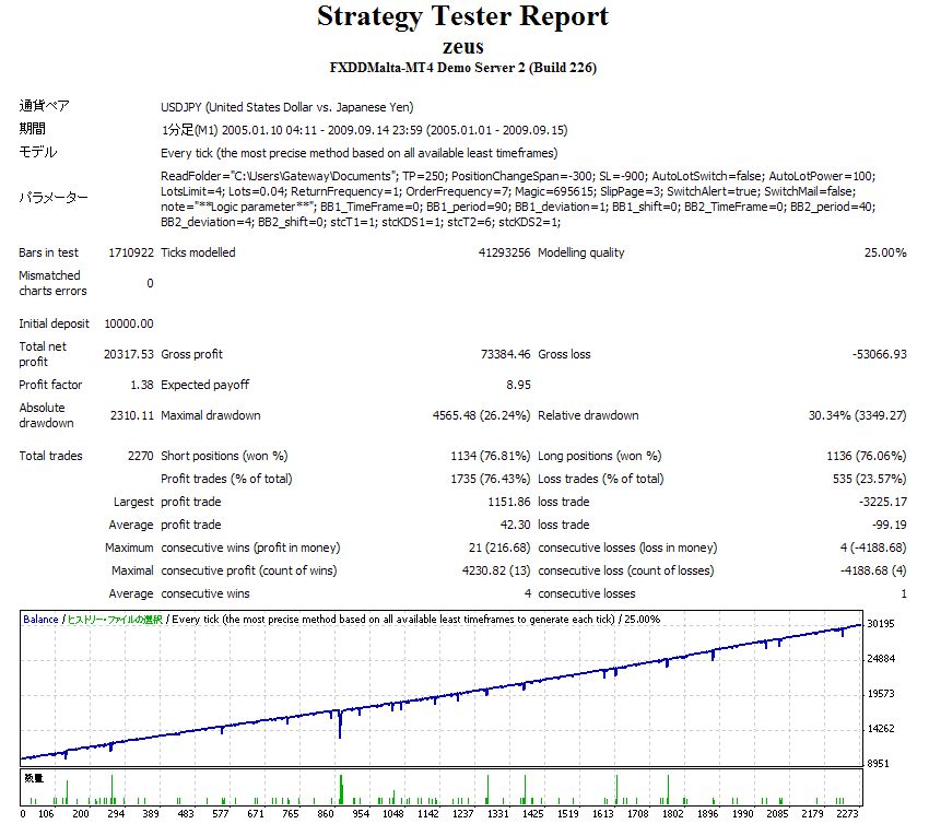 Strategy Tester Report を見た限りでは