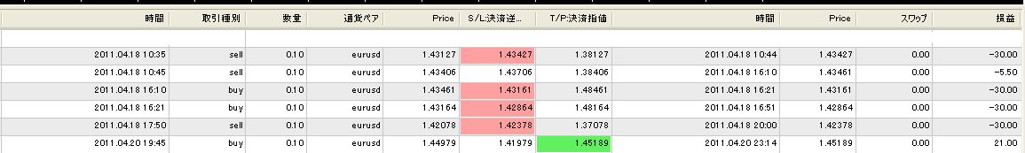 (1)のスキャルピングロジックがTP21、SL30らしく、最も多く登場します。