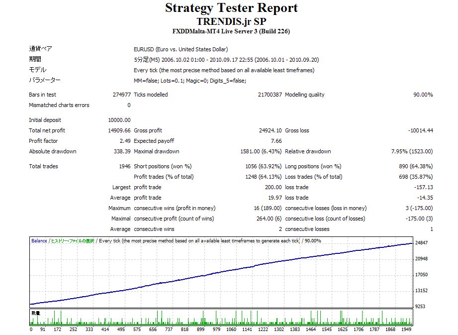 Strategy Tester Report を見る限りでは
