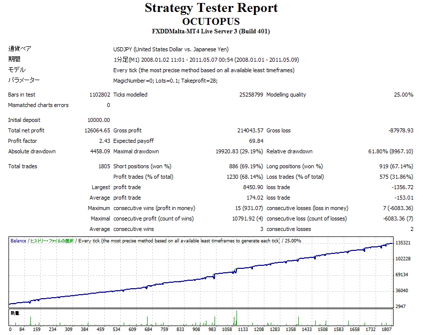 ドル円のみの稼動で0.01ロット、