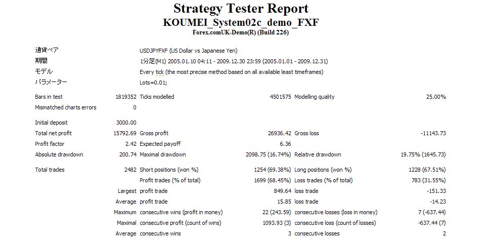 FX孔明の StrategyTesterReport を