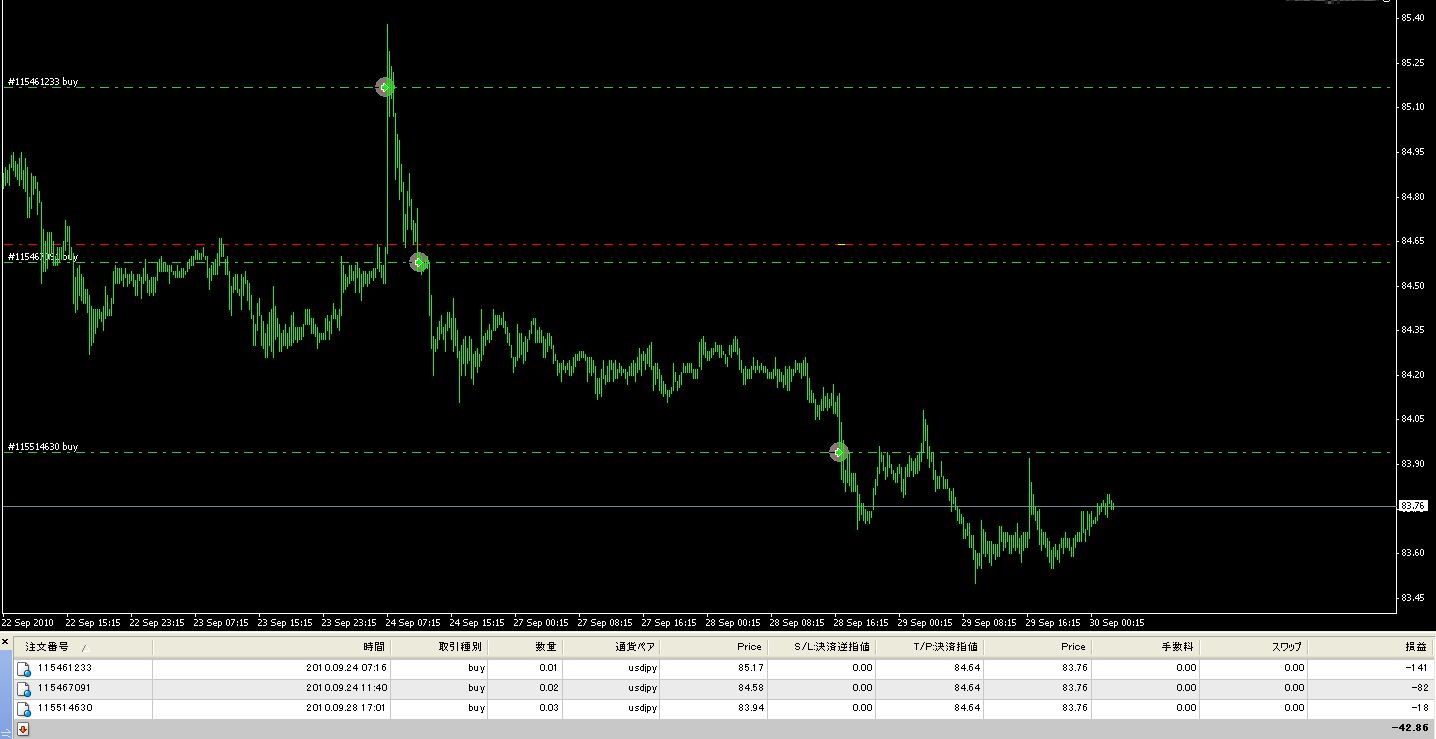 これはマーチンゲールで積んだポジションを