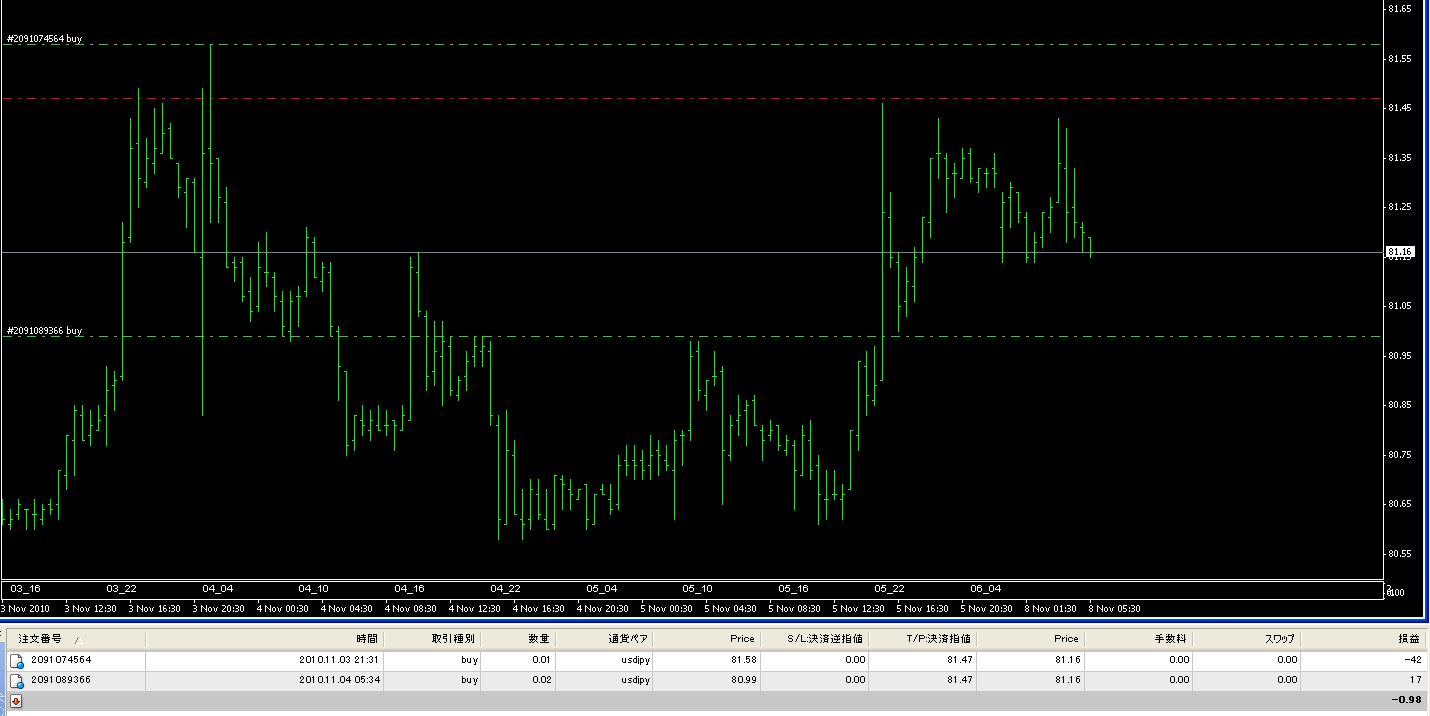 先週、ロングポジションで1発目のナンピンが