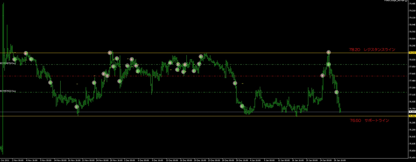 大きなニュースでも出ない限り、この78.20~76.50のレンジは暫く続きそうですね。