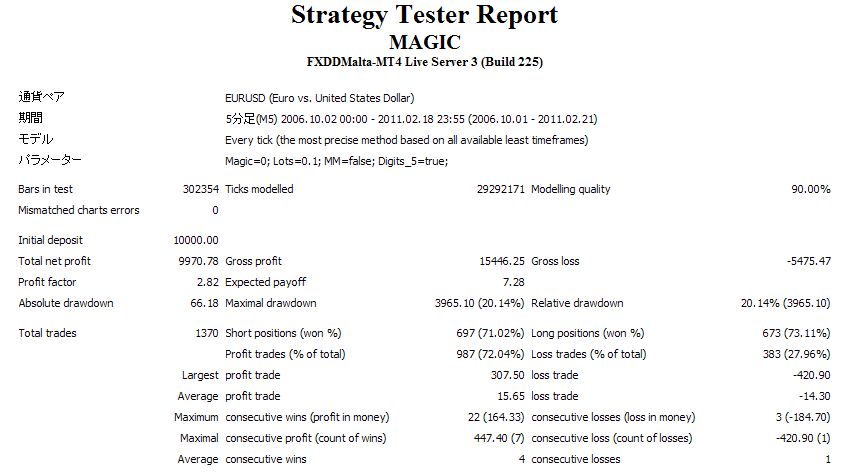 2006年10.01 ~ 2011年02.21 の損益曲線です。