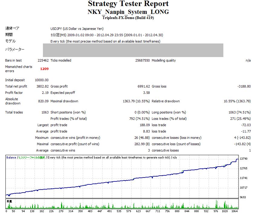 2009年1月1日 ~ 2012年4月30日 バックテスト